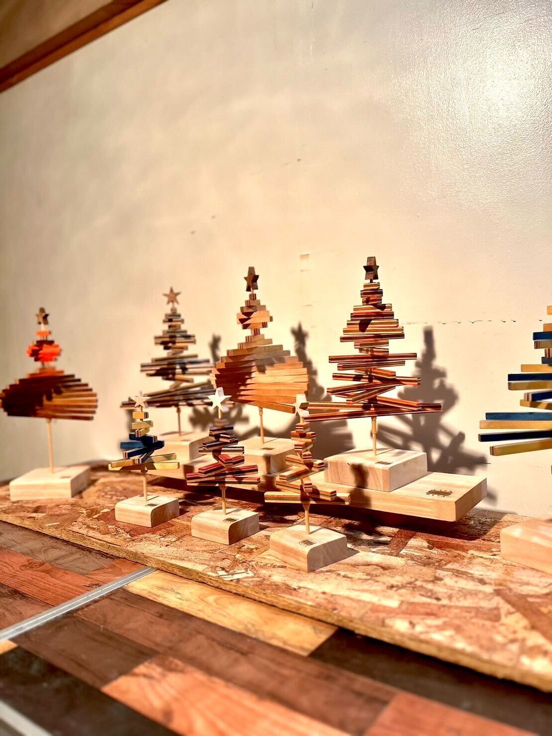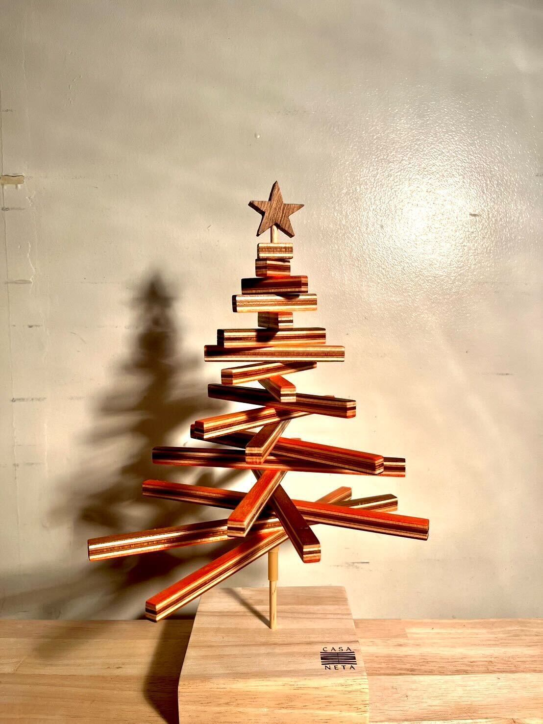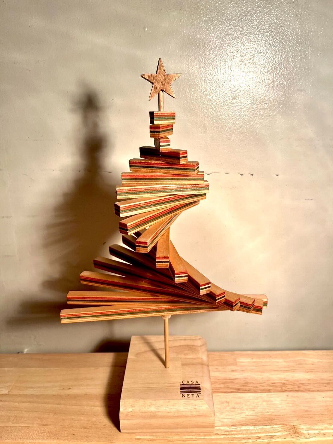 この木製のツリーは、クリスマスシーズンだけでなく一年中お楽しみいただけるアイテムです。完全オーダーメイドで、スケートボードをリメイクして作られたユニークなデザインが魅力的です。